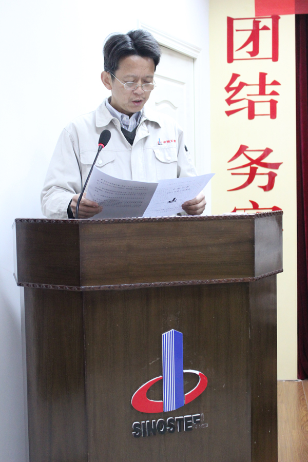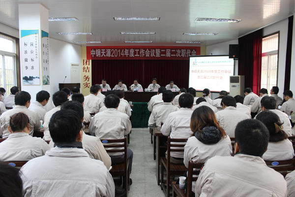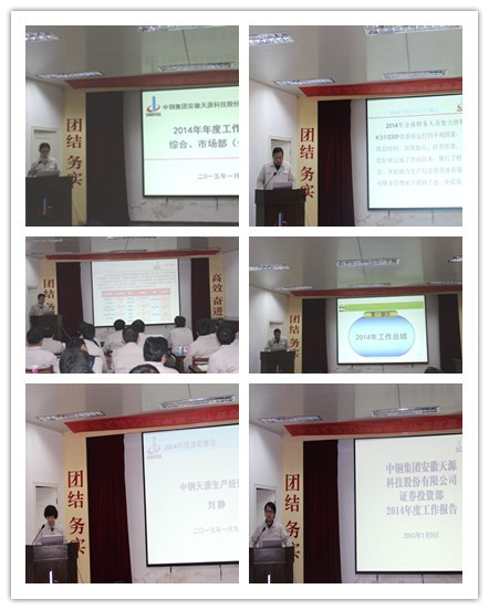 2015年1月9日,中鋼天源2014年年度工作會議暨二屆二次職代會在本部一樓會議室隆重召開。公司領導班子、中層以上干部、職代會代表及部分離退休干部共70余人參加了會議。會議由公司副總經理、黨委副書記、紀委書記亞海斌主持。