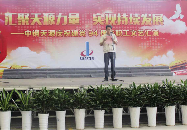 為慶祝建黨94周年,充分展現(xiàn)公司成立以來的輝煌成就、廣大干部員工干事創(chuàng)業(yè)的精神風(fēng)貌,弘揚(yáng)正能量,6月27日上午,由中鋼天源黨委主辦,黨群工作部、工會、團(tuán)委協(xié)辦的“匯聚天源力量、實(shí)現(xiàn)持續(xù)發(fā)展——中鋼天源慶祝建黨94周年職工文藝匯演”在公司新區(qū)隆重舉行。公司領(lǐng)導(dǎo)班子及高管,各單位、各部門助理以上中層干部,退休老同志代表,在公司的人大代表、政協(xié)委員,公司第二屆職代會、工代會代表,公司成立以來在各條戰(zhàn)線上獲得榮譽(yù)表彰的先進(jìn)模范人物代表共200余人觀看了演出。