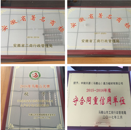 近日,中鋼天源被授予“安徽省著名商標(biāo)(2016-2019)、”、“安徽省著名商標(biāo)(2017-2020)”、“2016年馬鞍山市名牌產(chǎn)品”等榮譽(yù)稱號(hào),同時(shí)通力公司被評(píng)為“重合同守信用單位(2015-2016年度)”。
