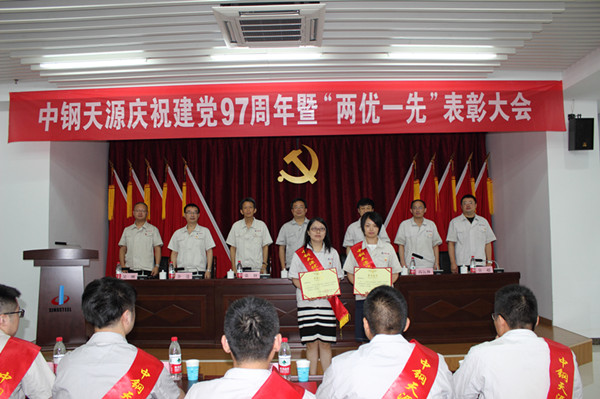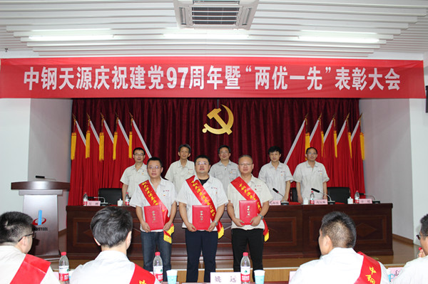 6月28日上午,中鋼天源在第一培訓教室隆重召開紀念中國共產黨成立97周年大會,表彰2017年度公司先進基層黨組織、優秀共產黨員、優秀黨務工作者。馬鞍山本部的公司領導班子成員、中層干部、受表彰的先進集體及個人、全體黨員共100余人參加會議。會議由公司總經理、黨委副書記毛海波同志主持。